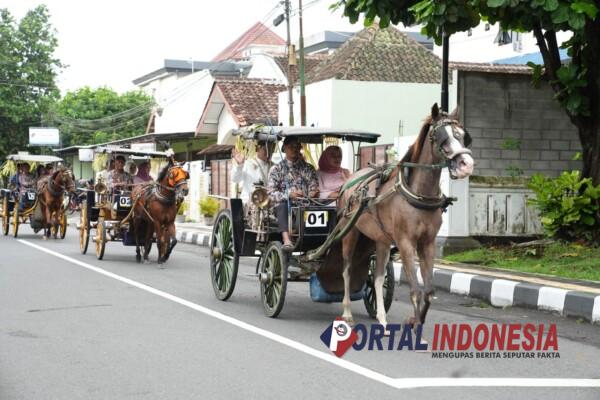 Usai menyaksikan prosesi ijab qabul, Bupati Sleman Kustini Sri Purnomo juga menyempatkan mengantarkan 10 pengantin mengendarai andong menuju Pendopo Rumah Dinas Bupati untuk melaksanakan resepsi nikah massal.