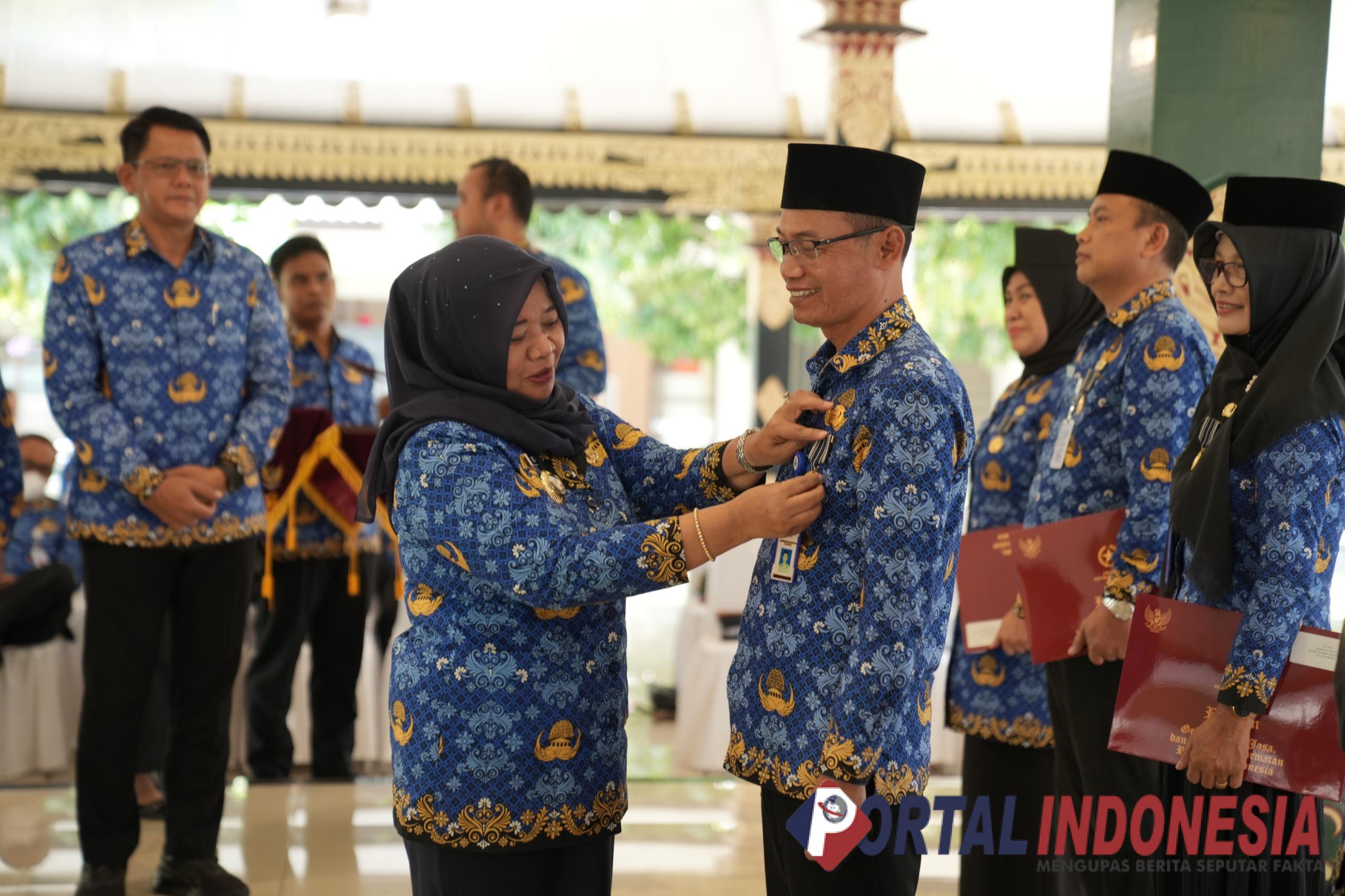 Bupati Kustini mengucapkan selamat sekaligus mengapresiasi seluruh penerima penghargaan Satyalencana Karya Satya ini.