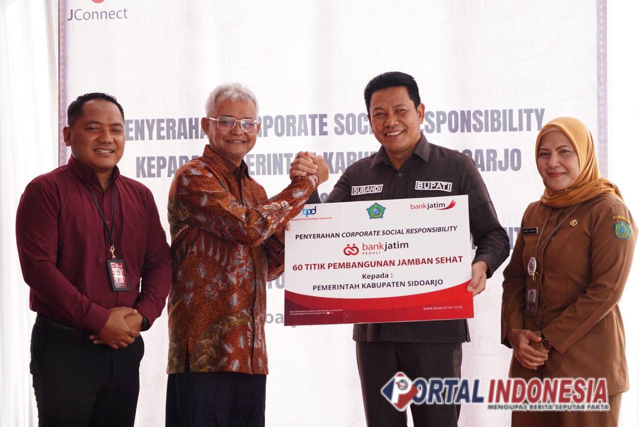 SIDOARJO – Komitmen Bank Jatim dalam mendukung peningkatan kualitas hidup masyarakat kembali diwujudkan melalui program Corporate Social Responsibility (CSR) dengan menyerahkan 60 unit jamban sehat kepada Pemerintah Kabupaten (Pemkab) Sidoarjo.