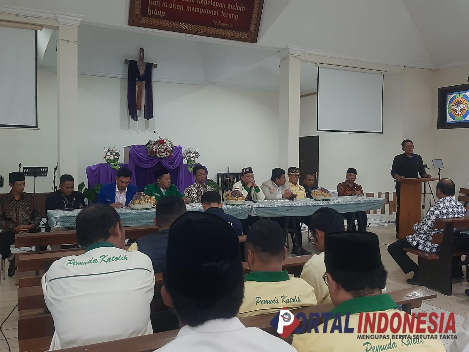 SLEMAN – Jelang Natal 2024 dan Tahun Baru 2025, tujuh organisasi pemuda lintas agama melakukan kunjungan silaturahmi di Gereja Kristen Jawa (GKJ) Minomartani, Sleman-DIY, Jumat (20/12/2024). Kedatangan pimpinan pemuda lintas iman di Gereja kecil tersebut didampingi AM Putut Prabantoro.
