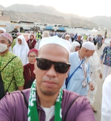 PALEMBANG — Personil Bid Humas Polda Sumsel Aipda Muhammad Aliudin sudah 3 kali berjalan dari maktab(tempat tinggal sementara) dimina berjalan kaki ke jumarat yang berjarak kurang lebih 4,5 Km untuk melakukan lempar jumarat dimana ini adalah salah satu wajib haji yang harus dilakukan para jemaah haji seluruh dunia pada 12 Dzulhijjah 1445 H atau 18 Juni 2024.