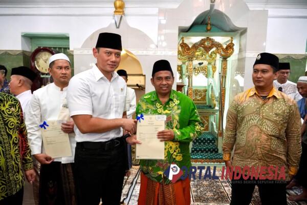 Menteri Agraria dan Tata Ruang/Kepala Badan Pertanahan Nasional (ATR/BPN), Agus Harimurti Yudhoyono (AHY) serahkan Sertifikat kepada Pengasuh Pondok Pesantren