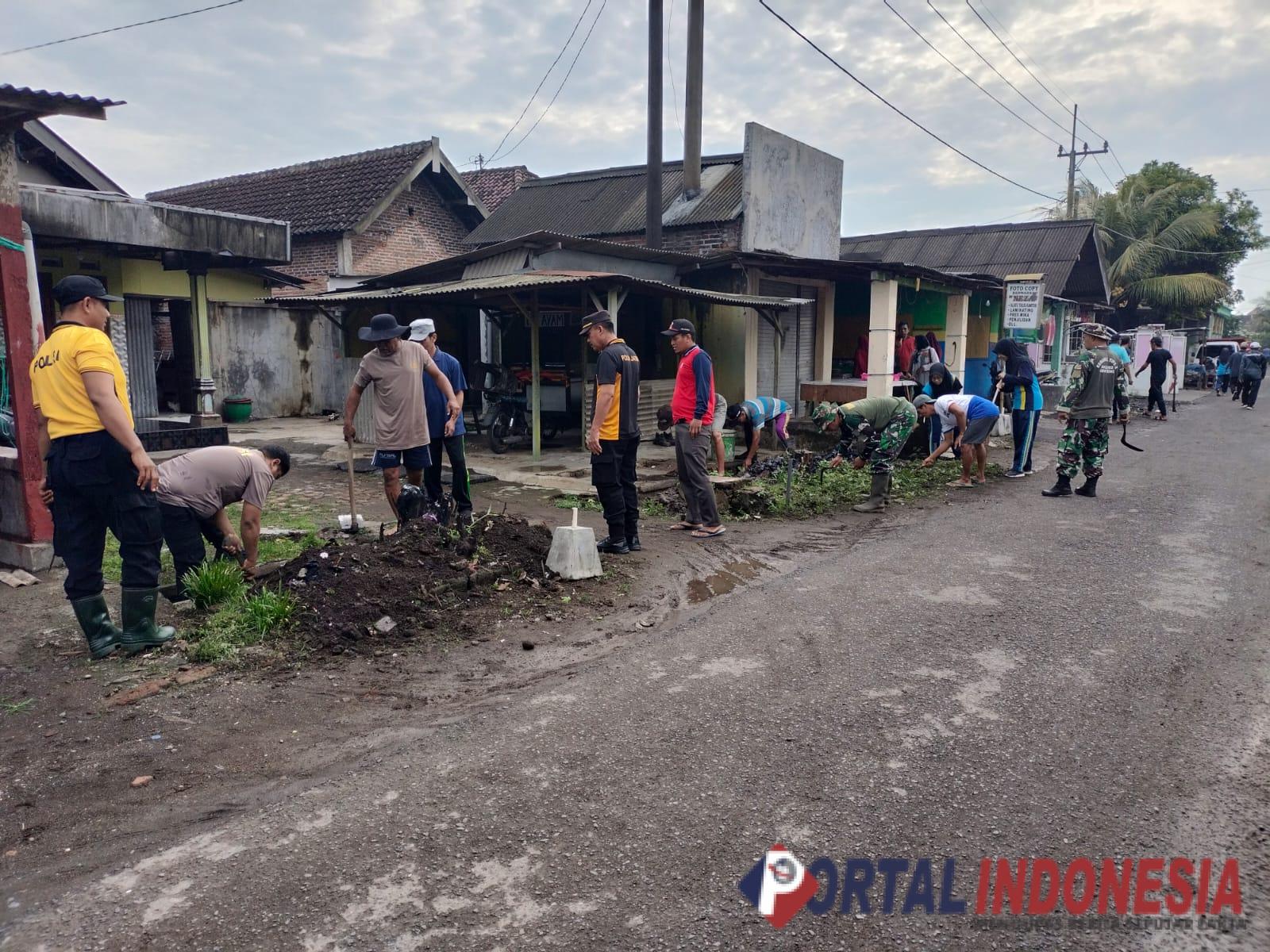 Kegiatan yang berlangsung pagi ini melibatkan aparatur desa hingga aparat keamanan, dengan fokus utama membersihkan rumput liar, sampah, dan enceng gondok di jalan raya serta saluran air. Langkah ini dilakukan untuk mengantisipasi potensi banjir akibat saluran tersumbat.
