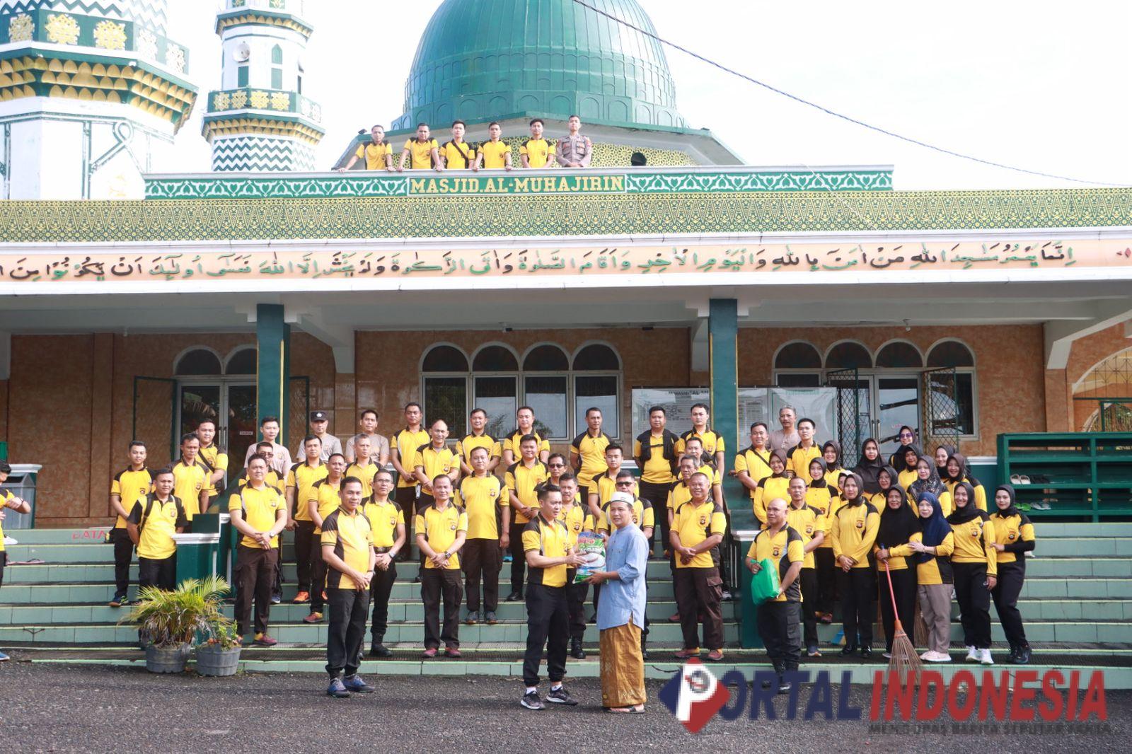 Dalam kegiatan ini, personel Polres Lahat bersama masyarakat melakukan pembersihan lingkungan masjid, menyalurkan bantuan sembako kepada warga yang membutuhkan, serta menyerahkan peralatan kebersihan untuk mendukung kenyamanan tempat ibadah.