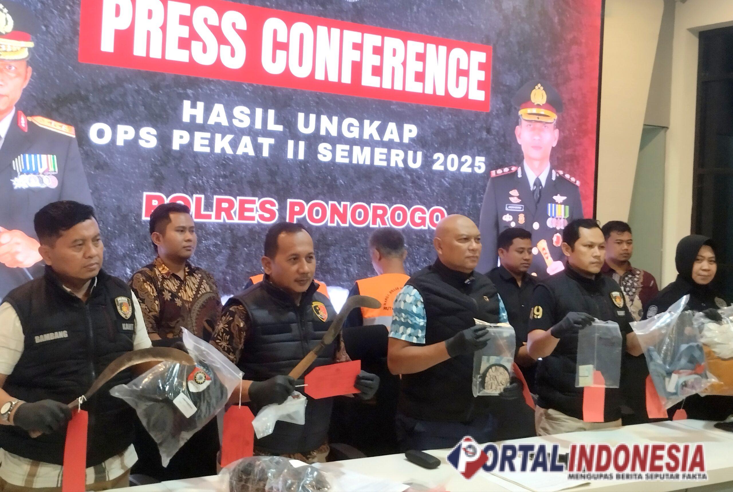 Kepolisian Polres Ponorogo saat menunjukkan sejumlah barang bukti