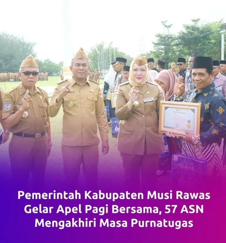 Kepada pegawai yang masih aktif, Bupati berpesan agar terus menjaga semangat kerja dan meningkatkan kinerja demi mendukung kemajuan Kabupaten Musi Rawas.