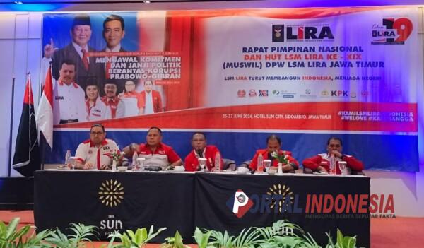 Dalam acara yang digelar selama 3 hari sejak Selasa 25 hingga Kamis 27 Juni 2024 tersebut, diisi dengan berbagai rangkaian kegiatan diantaranya Muswil, rapat pimpinan nasional, peringatan HUT LSM LIRA yang ke 19 tahun.