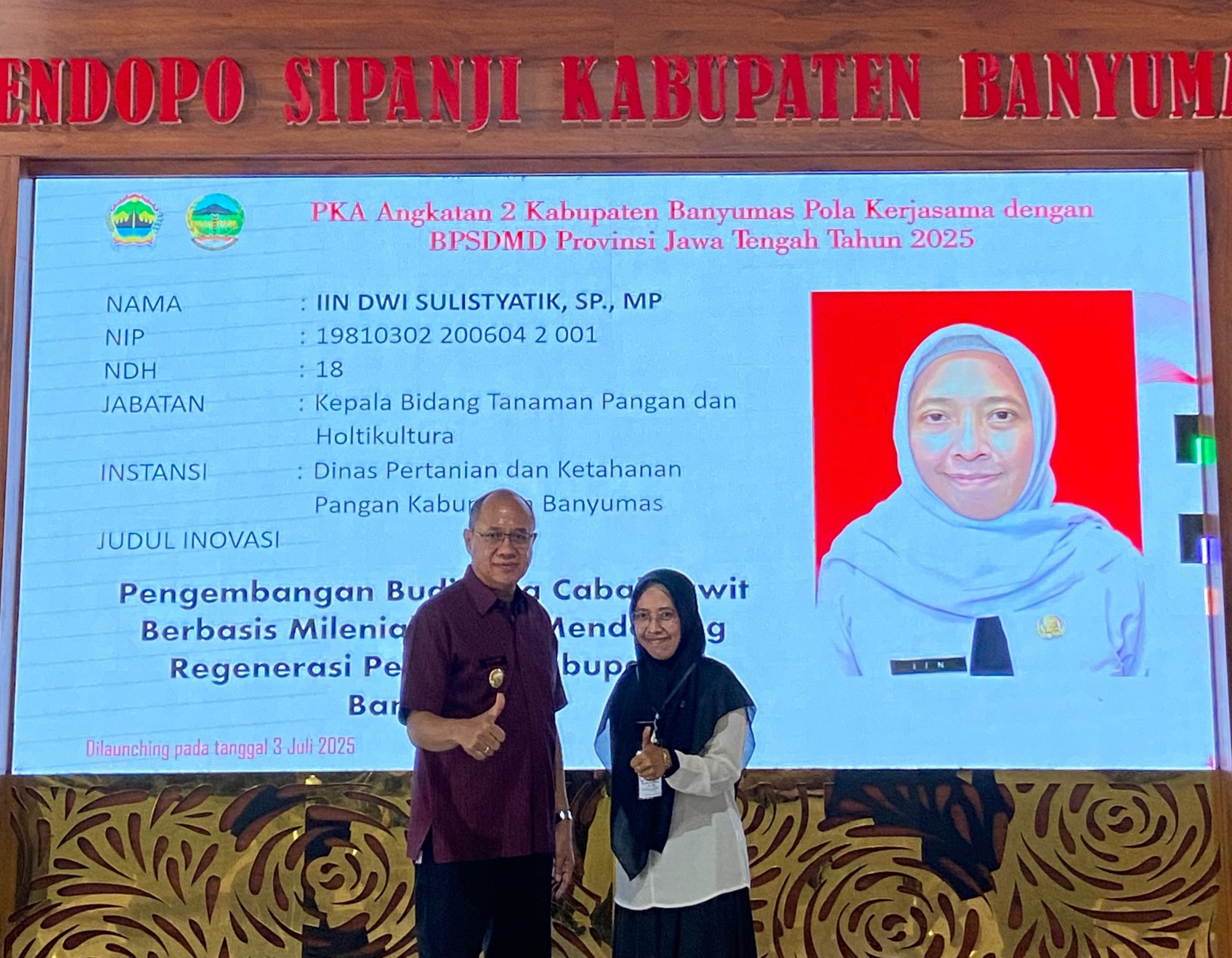 Sejalan dengan itu, sebanyak 33 inovasi aksi perubahan kinerja organisasi dari peserta PKA resmi diluncurkan. Salah satu aksi yang menjadi sorotan adalah program bertajuk “Pengembangan Budidaya Cabai Rawit Berbasis Milenial untuk Mendorong Regenerasi Petani di Kabupaten Banyumad” oleh Iin Dwi Sulistyatik, SP., MP, Kepala Bidang Tanaman Pangan dan Hortikultura Dinas Pertanian dan Ketahanan Pangan Kabupaten Banyumas.