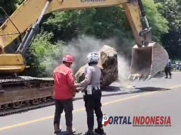 Insiden ini sempat mengganggu arus lalu lintas sebelum akhirnya batu berhasil dievakuasi.