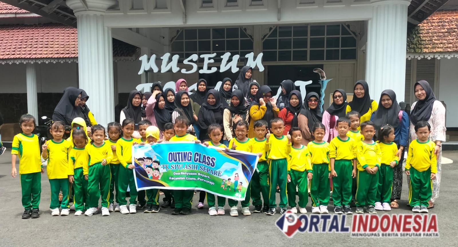 PURWOREJO — TK Siwi Asih Desa Banyuasin Separe, Kecamatan Loano Kabupaten Purworejo melaksanakan kegiatan pembelajaran luar kelas dengan mengajak para peserta didik berkunjung ke Museum Tosan Aji Purworejo, Rabu 4/12,