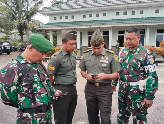 BANYUASIN — Seluruh prajurit jajaran Kodim 0430/Banyuasin diminta untuk mengeluarkan Handphonenya, guna memastikan tidak terlibat atau memainkan judi online. Pemeriksaan dipimpin oleh Perwira Seksi (Pasi) Intelijen, Kapten Inf Hermawan S dan perwira staf kepada Personel Kodim 0430/BA seusai mengikuti Upacara Bendera mingguan di Makodim , Senin (24/6/2024).