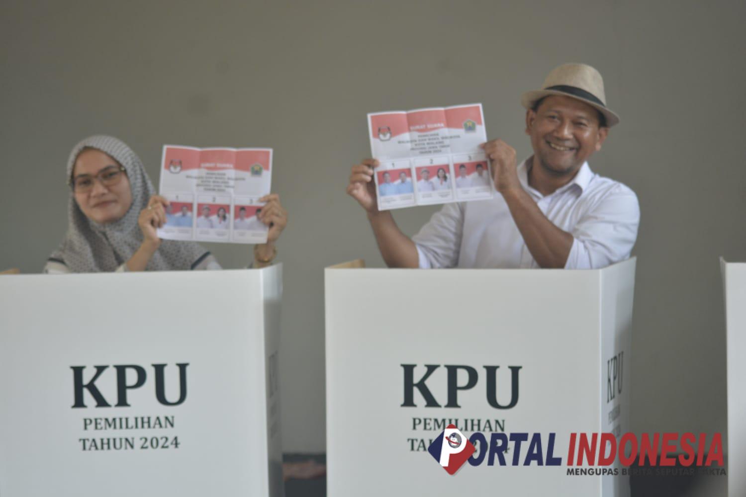 Heri Cahyono (Sam HC) Paslon nomor dua bersama istri saat melaksanakan pemungutan suara di TPS 12 Perum Permata Jingga Kota Malang.