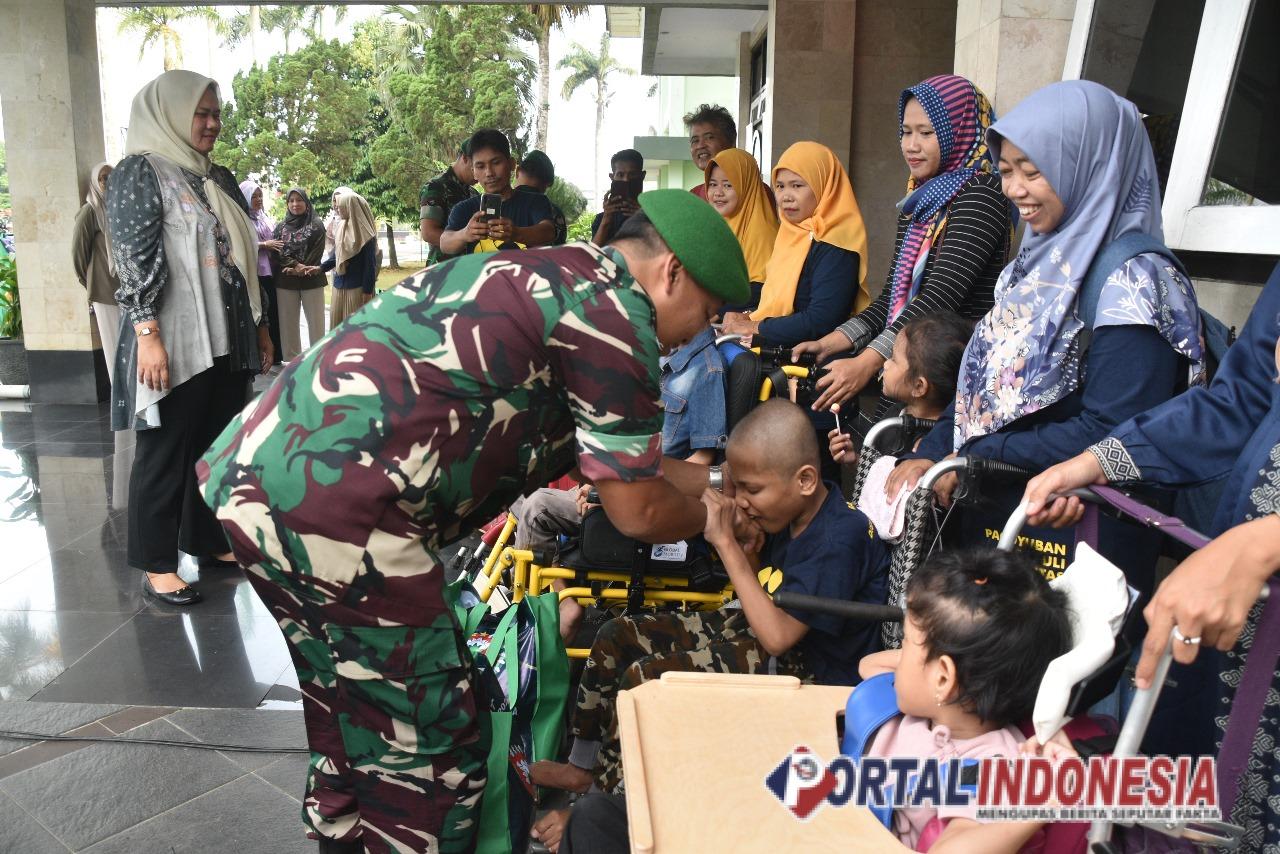 50 paket bingkisan dibagikan kepada penderita disabilitas ganda Banyumas, secara simbolis diserahkan langsung oleh Danrem 071/Wijayakusuma Kolonel Inf Jamaluddin, S.I.P., M.I.P., kepada perwakilan penderita disabilitas ganda Banyumas, di Makorem 071/Wijayakusuma Sokaraja Banyumas. Kamis (27/3/2025).