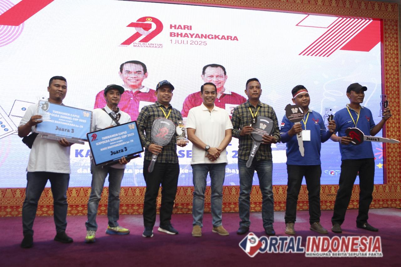 PALEMBANG — Bermodalkan pengalaman dari meja gaple hajatan, pasangan Dimas dan Rudy asal Prabumulih sukses membuat kejutan besar dengan merebut gelar Juara Pertama Kategori Umum dalam Turnamen Gaple Kapolda Sumsel Cup 2025.