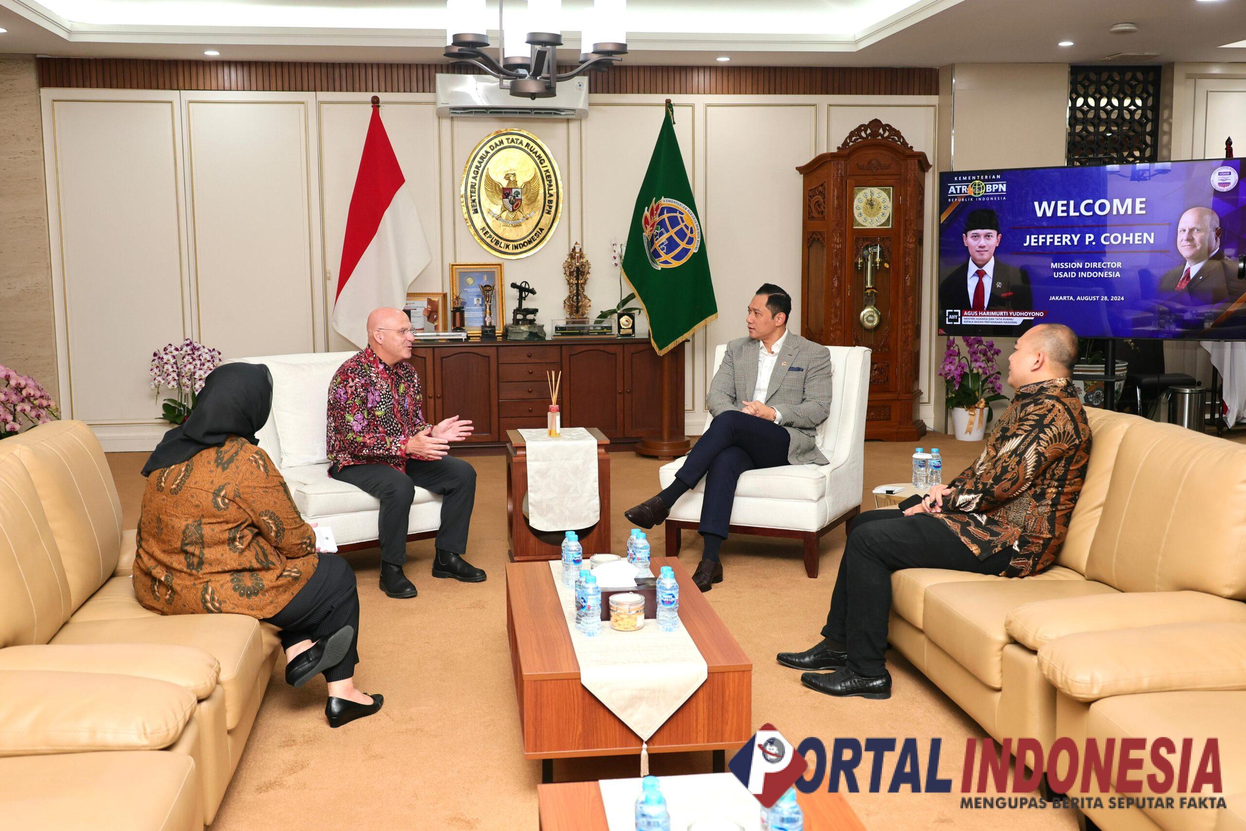 JAKARTA – Menteri Agraria dan Tata Ruang/Kepala Badan Pertanahan Nasional (ATR/BPN), Agus Harimurti Yudhoyono (AHY) melakukan pertemuan dengan Mission Director of United States Agency for International Development (USAID) Indonesia, Jeffery P. Cohen, bertempat di Kantor Kementerian ATR/BPN Jakarta, Rabu (28/8)