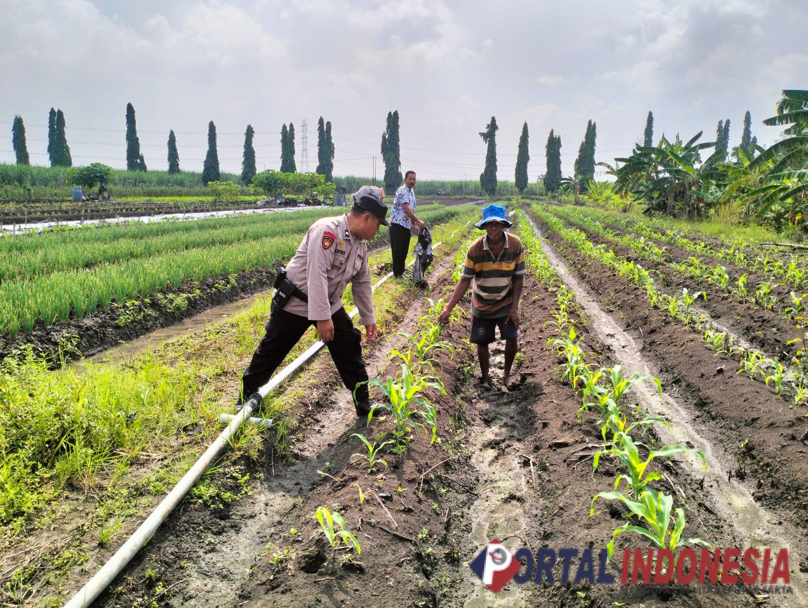 SIDOARJO – Bhabinkamtibmas Desa Gamping, Aipda Abdul Gofur, bersama Kepala Dusun (Kasun) setempat, meninjau pertumbuhan tanaman jagung di lahan milik Jiono, warga Desa Gamping, Kecamatan Krian, pada Senin (24/3/2025).