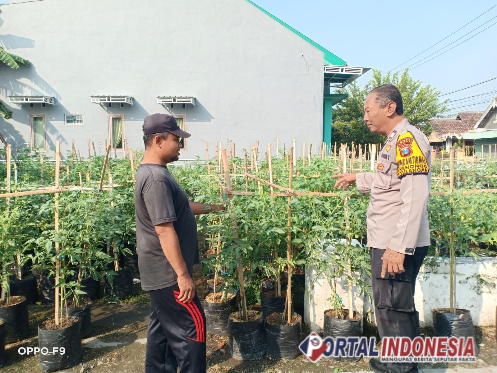 SIDOARJO — Guna mendukung program ketahanan pangan yang bergizi dan berkelanjutan dan Asta Cita Presiden Prabowo Subianto dan wujud Polisi Cinta Petani Bhabinkamtibmas Desa Kenongo, Aiptu Suyanto, melaksanakan kegiatan pengecekan lahan pekarangan pertanian milik warga yang digunakan untuk budidaya tanaman sayuran, khususnya tomat.