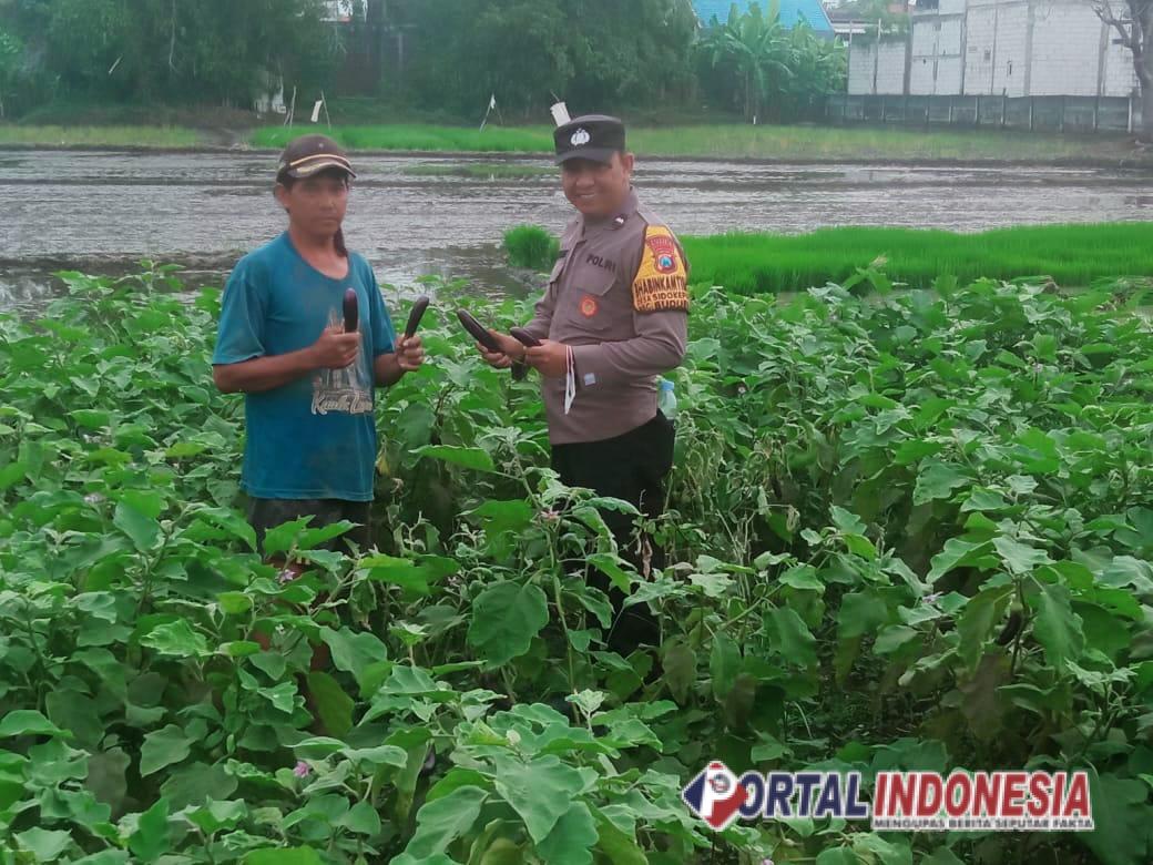 Bhabinkamtibmas Desa Sidokepung Dampingi Petani Terong Demi Ketahanan Pangan