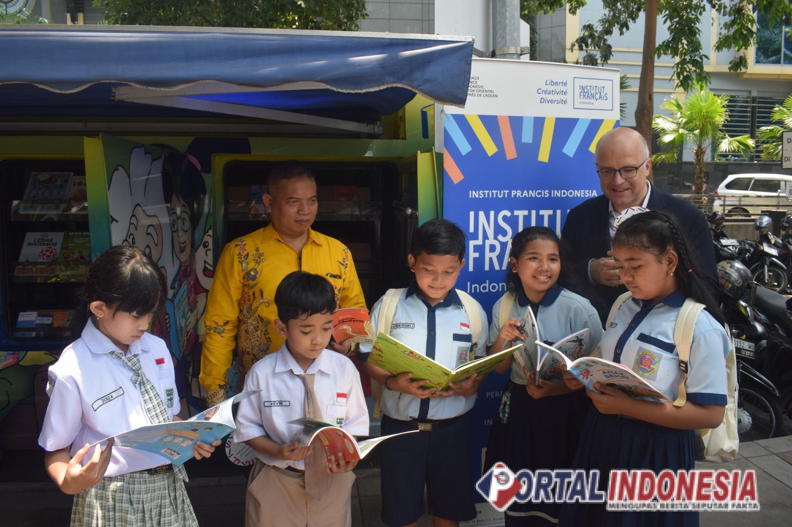 SURABAYA – Kedutaan Besar Prancis untuk Indonesia, Timor Leste, dan ASEAN melalui Institut français Indonésie (IFI) memperkenalkan Bibliothèque Mobile (BiMo) di Surabaya, Selasa (23/9/2025). Peluncuran yang berlangsung di Plaza Taman Bungkul ini menjadi bagian dari program literasi bertajuk “Ayo Baca!”.