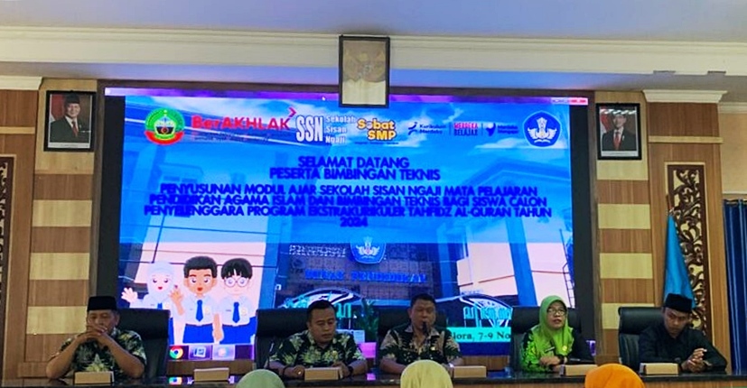 “Orang tua yang menyekolahkan anaknya di sekolah umum, merasa butuh akan tambahan ilmu keagamaan. Sementara di lain pihak, tidak dipungkiri pengaruh globalisasi yang makin masif, salah satunya media sosial yang mempengaruhi perilaku anak. Sehingga, memerlukan benteng keagamaan yang lebih kuat,” ucapnya pada Bimbingan Teknis Sekolah Sisan Ngaji (SSN) kepada sejumlah guru PAI jenjang SMP Negeri/Swasta di Aula B Dinas Pendidikan Kabupaten Blora dan 30 Siswa tahfids di Aula C Dinas Pendidikan Kabupaten Blora, 7-9 November 2024.