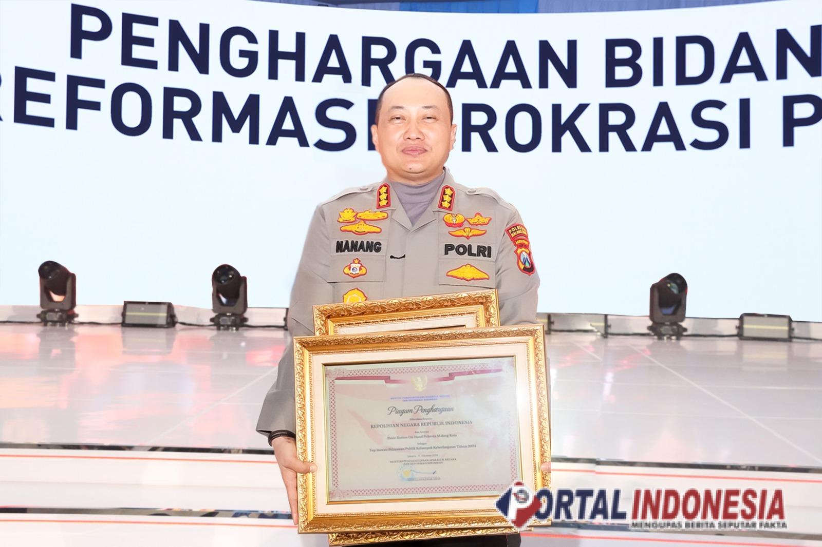 - Penghargaan Pelayanan Prima Kategori “A” atas capaian Polresta Malang Kota dalam evaluasi pelayanan publik tingkat Polri.
