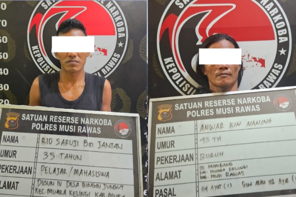 Diketahui, tersangka Anwar (43), warga Desa Mambang, Kecamatan Muara Kelingi, ditangkap di Jalan Lintas Sumatera (Jalinsum), Desa Suro, Kecamatan Tuah Negeri, pada Jumat (14/2/2025) pukul 15.00 WIB. Dari hasil pengembangan, tim kemudian menangkap Rio Saruji (34), warga Dusun IV, Desa Bingin Jungut, sekitar pukul 17.00 WIB di hari yang sama.
