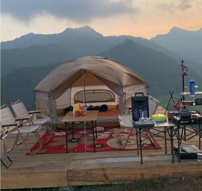 Tidak perlu repot Bukit Tranggulasi hills juga menyediakan paket glamping dengan tenda luxury dan menyewakan perlengkapan camping. Berikut  informasi mengenai harga dan fasilitasnya