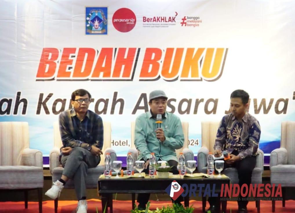 Syukron Arif Muttaqien (tengah) mengupas buku Salah Kaprah Aksara Jawa, karyanya (Brd/Portal Indonesia)