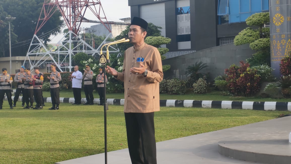 untuk personel yang beragama islam melaksanakan binrohtal di lapangan Apel Mapolda Sumsel
