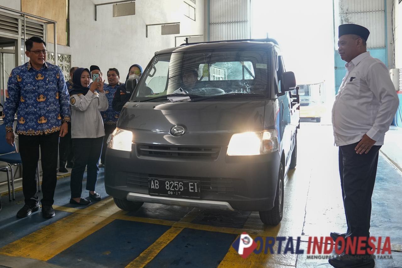 Bupati Sleman Harda Kiswaya (baju putih) pantau Uji KIR kendaraan bermotor di Dishub Sleman (Portal Indonesia/Brd)