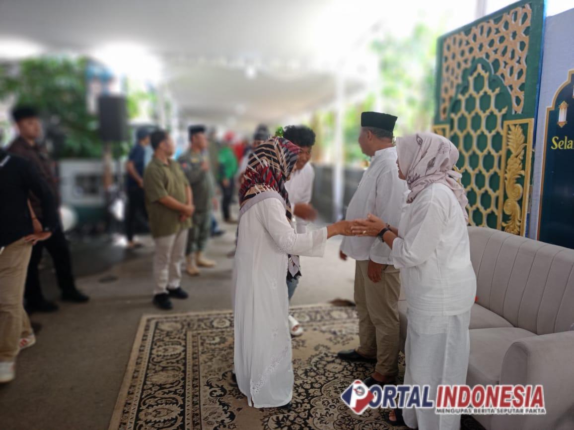 Para tamu yang datang, langsung berjabat tangan seraya mengucapkan selamat hari raya Idul Fitri dengan Harda Kiswaya, dan kemudian mereka terus menyantap berbagai hidangan yang telah disiapkan.