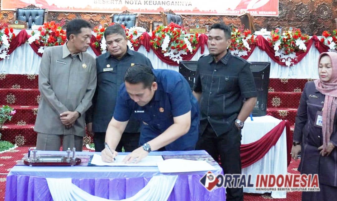 MERANGIN – Bupati Merangin H M Syukur menyampaikan apresiasi setinggi-tingginya kepada Ketua, Wakil Ketua, dan seluruh Fraksi DPRD Merangin yang telah menyetujui Rancangan Peraturan Daerah (Ranperda) Rencana Pembangunan Jangka Menengah Daerah (RPJMD) Kabupaten Merangin 2025–2029 menjadi Peraturan Daerah (Perda).