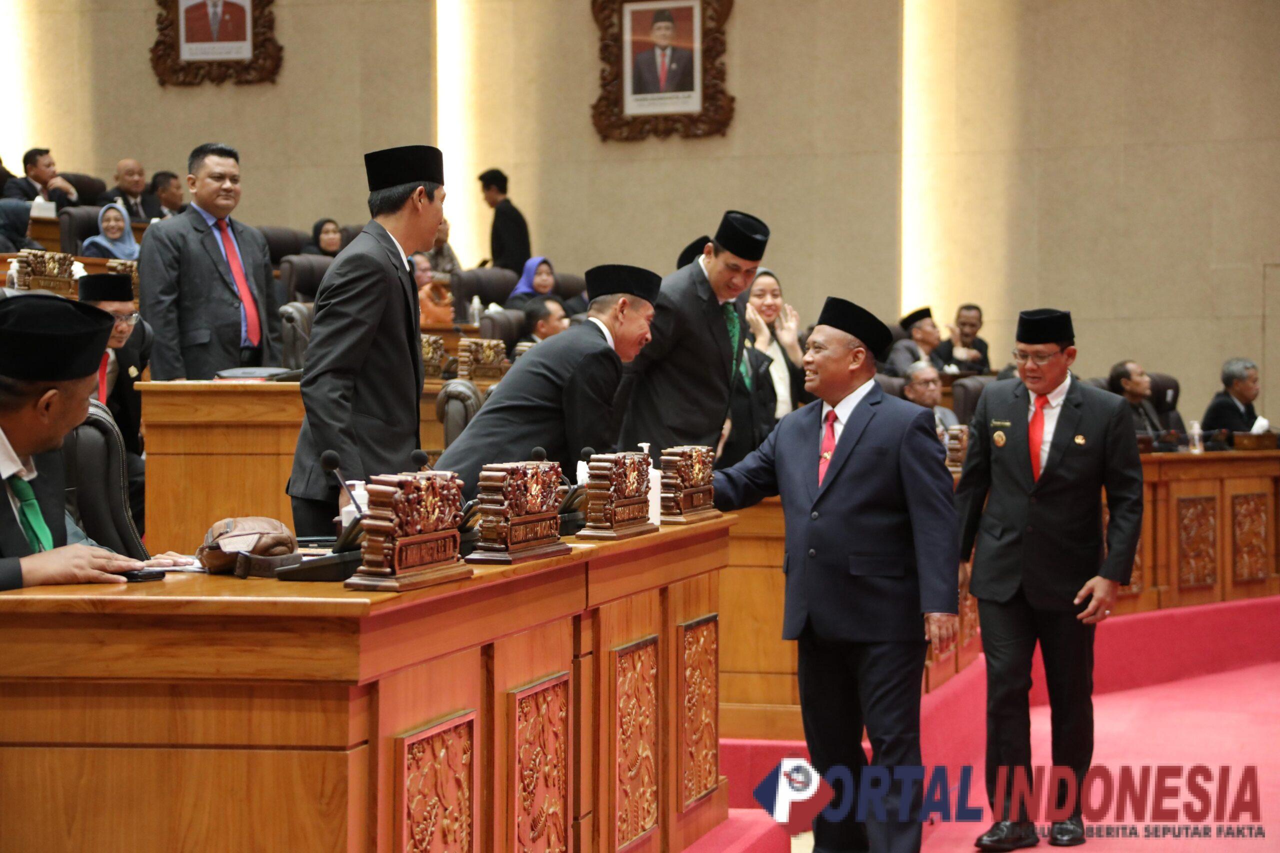 Usai pidato, Bupati dan Wakil Bupati Sleman, Harda Kiswaya dan Danang Maharsa berjabat tangan dengan para pimpinan DPRD Sleman (Portal Indonesia/Brd)