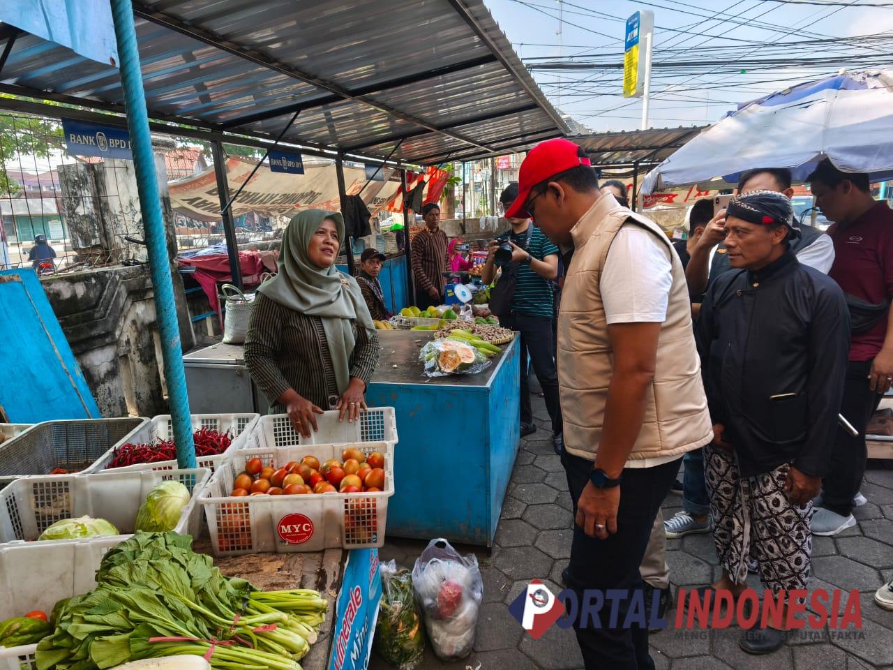 SLEMAN – Calon Wakil Bupati (Cawabup) Sleman nomor urut 2, Danang Maharsa beserta rombongan berkunjung ke Pasar Condongcatur, Kapanewon Depok Kabupaten Sleman, Kamis pagi (7/11/2024).