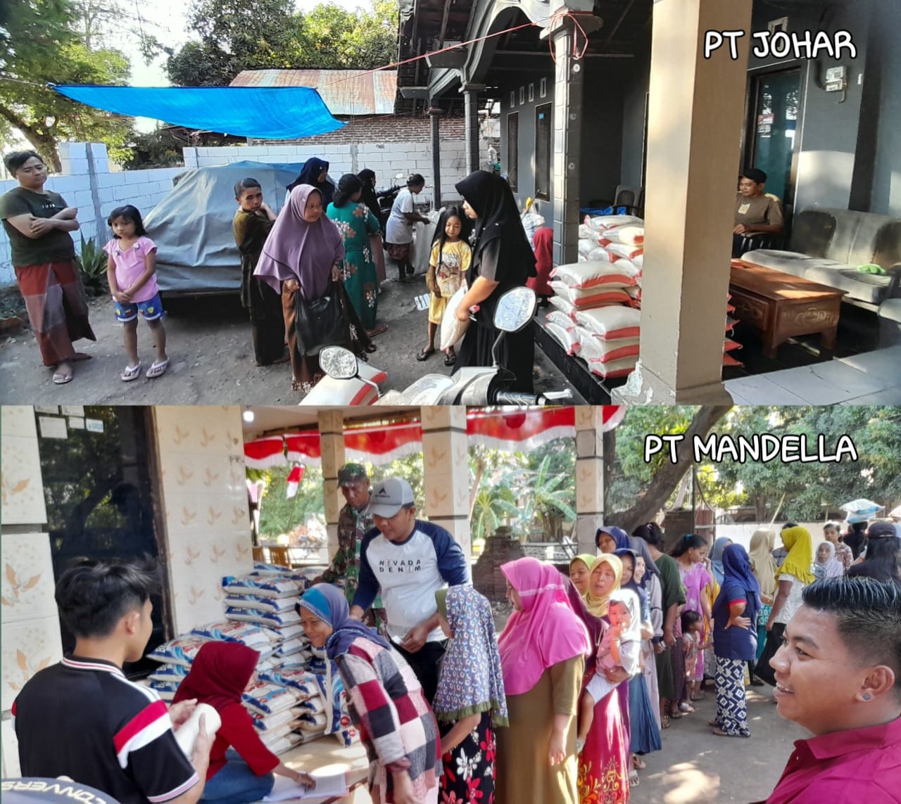 Pembagian sembako dilakukan secara simbolis oleh perwakilan perusahaan, diwakili oleh Humas masing-masing perusahaan, kepada warga di beberapa lokasi berbeda.