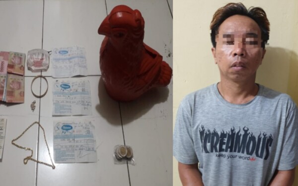 PROBOLINGGO,- Gegara mencuri emas dan celengan milik keponakannya, seorang pria paruh baya diamankan anggota Unit Reskrim Polsek Bantaran Polres Probolinggo.