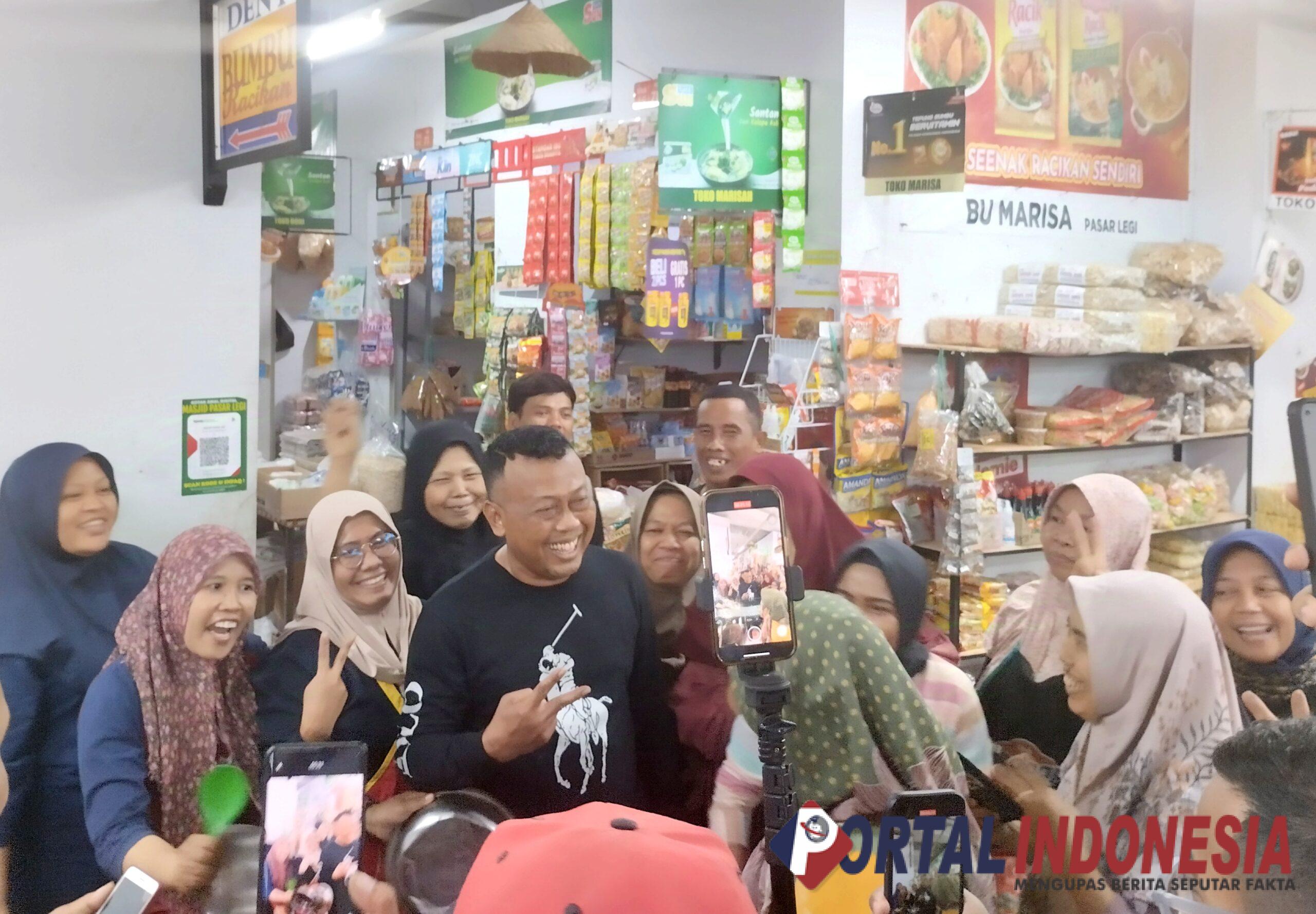 Pun, nampak para pedagang antusias menyambut kedatangan calon bupati nomor urut 02 tersebut serta tak jarang menyempatkan foto bersama.