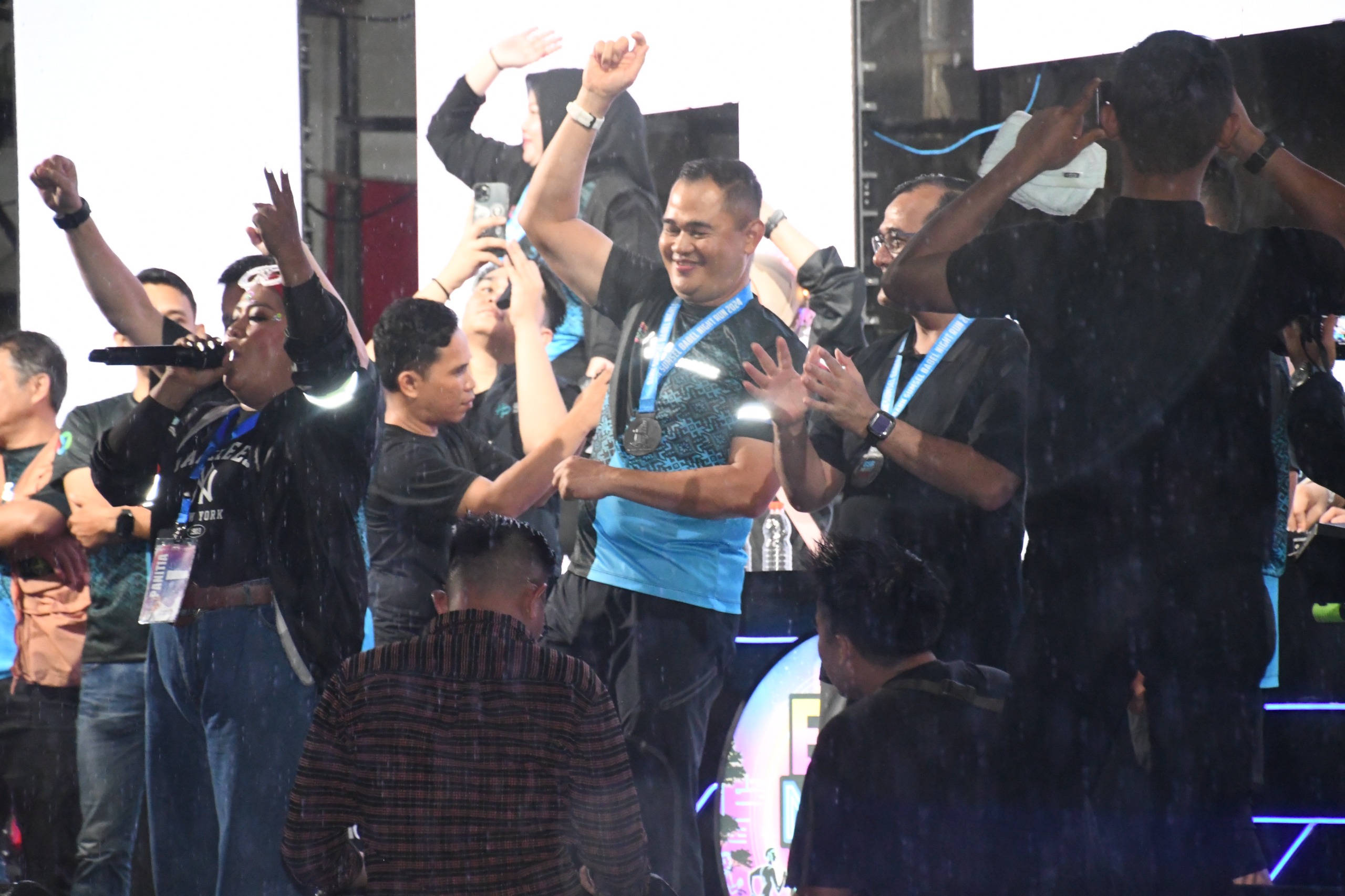 PALEMBANG — Danrem 044/Gapo Brigjen TNI Muhammad Thohir, S.Sos., M.M beserta Ibu Tina Thohir hadir dan memeriahkan BSB Night Run dalam rangka peringatan HUT ke-67 Bank Sumsel Babel, Sabtu (24/11/2024).