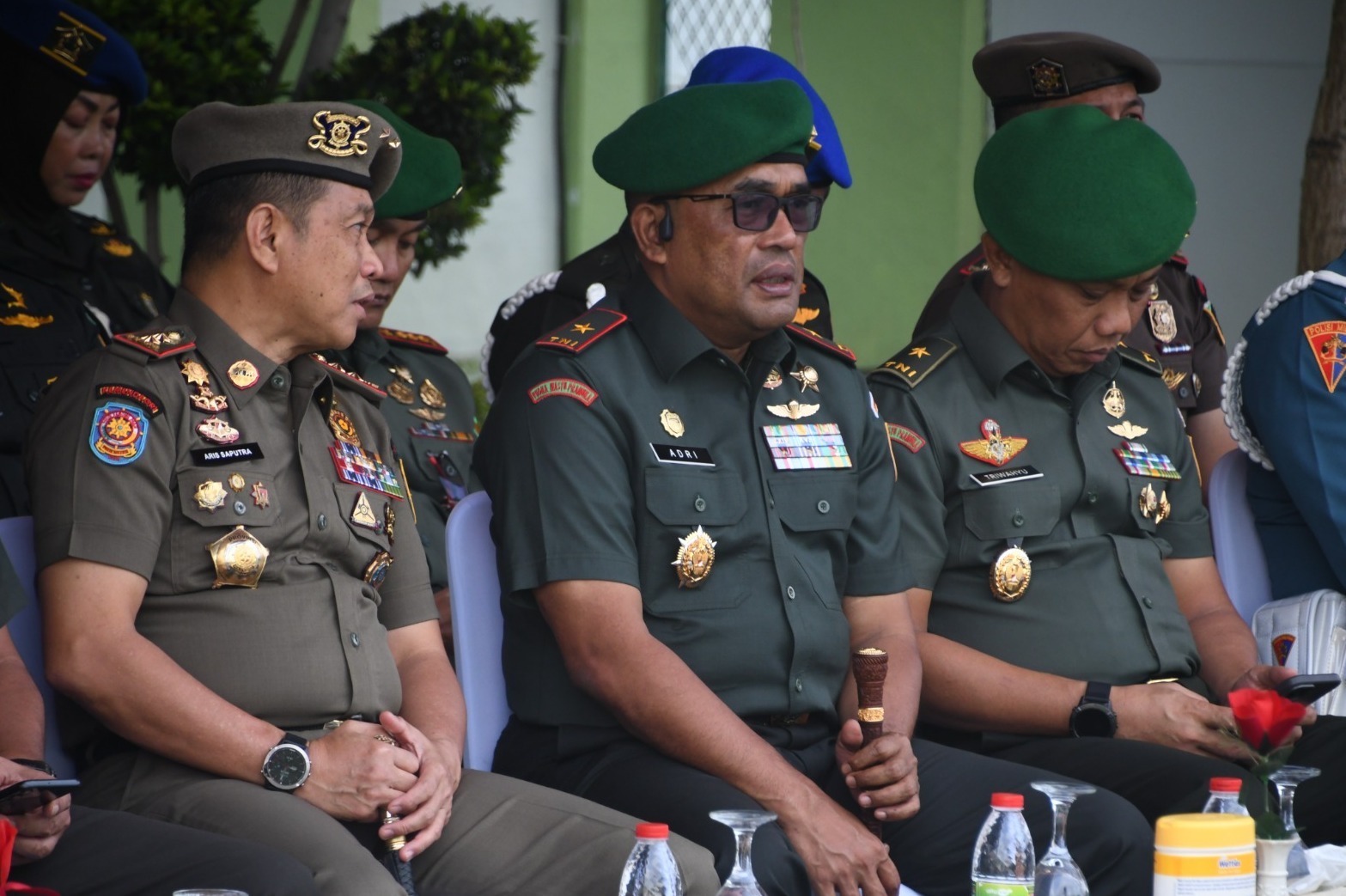 PALEMBANG — Danrem 044/Gapo Brigjen TNI Adri Koesdyanto mengikuti Upacara Gelar Pasukan Gaktib dan Upacara Yustisi 2025, bertempat di Makodam II/Swj Jl. Jend. Sudirman Km 3 Kota Palembang, Senin (10/2/2025).