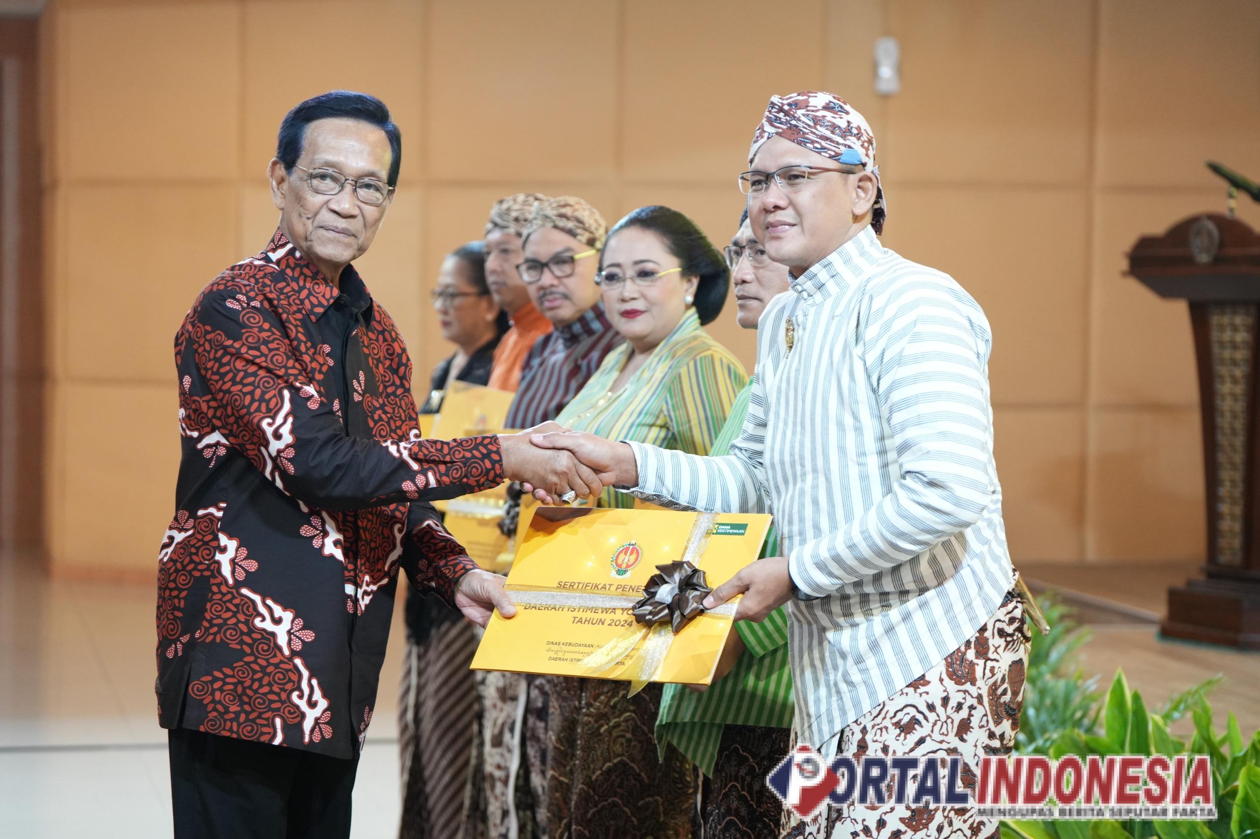 Gubernur DIY Sri Sultan HB X serahkan sertifikat kepada Wakil Bupati Sleman Danang Maharsa (Portal Indonesia/Brd)