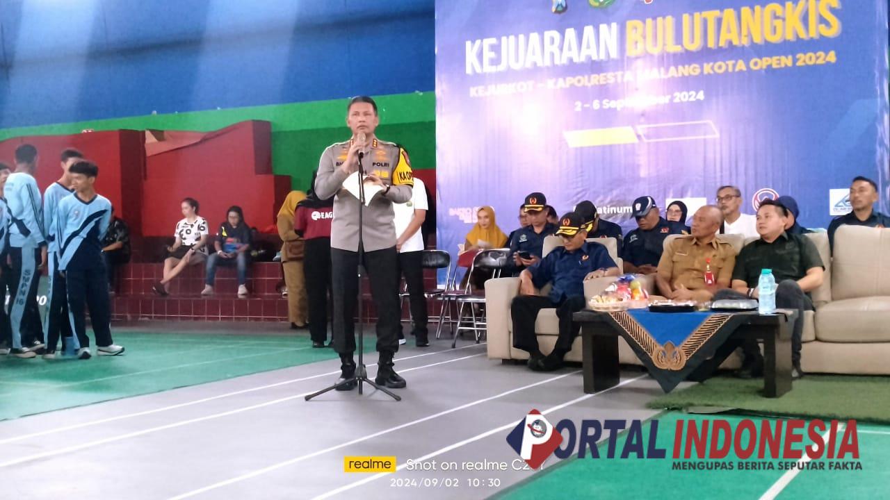 Kapolresta Malang Kota Kombes. Pol. Budi Hermanto, S.I.K, M.Si saat berikan sambutan di Kejuaraan Kota (Kejurkot) Bulu Tangkis.