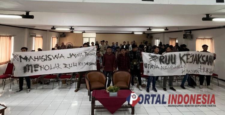 KOTA MALANG – Ratusan mahasiswa yang tergabung dalam Pemuda Mahasiswa Jawa Timur menggelar diskusi dan deklarasi menolak Rancangan Undang-Undang Kejaksaan (RUU Kejaksaan) pada Jumat (21/02/2025).