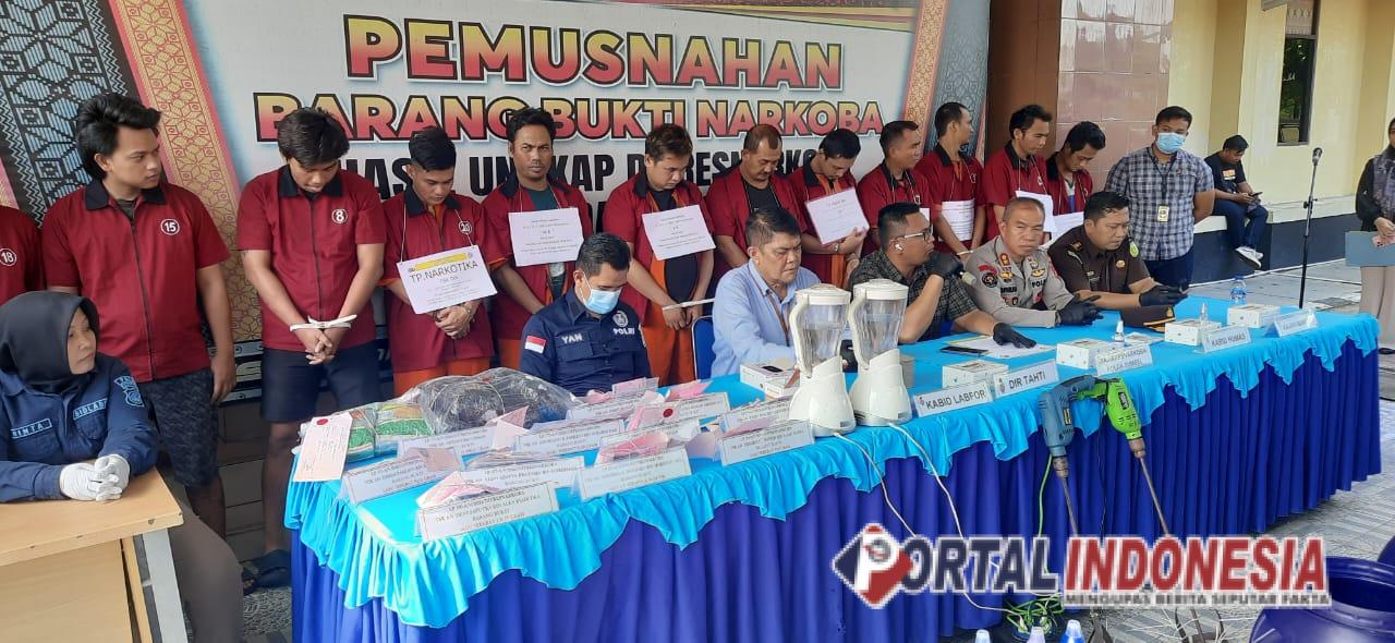 Disaksikan 16 Kurir, Polda Sumsel Musnahkan BB 11,7 Kg dan Sabu 1.317 Butir Ekstasi