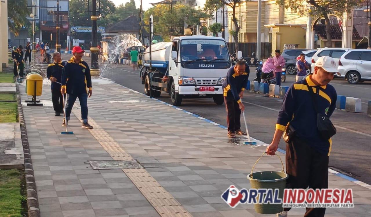PASURUAN – Semangat menjaga kebersihan kota terus digelorakan oleh Dinas Lingkungan Hidup, Kebersihan, dan Pertamanan (DLHKP) Kota Pasuruan. Melalui program rutin bertajuk Jumat Bersih, DLHKP mengerahkan tim untuk melakukan pembersihan menyeluruh di kawasan Alun-Alun Kota Pasuruan, Jumat (11/7/2025).