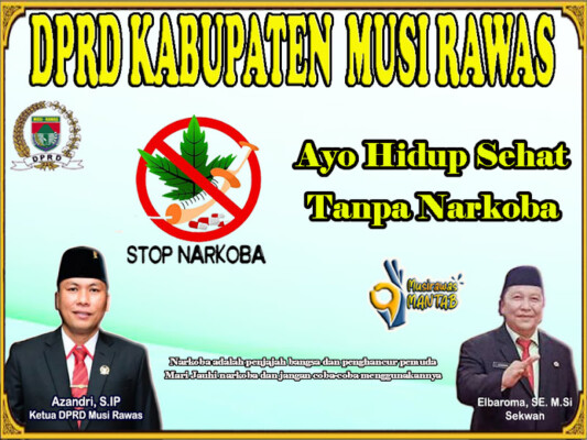 “DPRD Musi Rawas mengajak untuk hidup sehat tanpa narkoba demi masa depan yang lebih baik dan berkualitas. Mari jadikan kesehatan sebagai prioritas utama, jauhkan diri dari bahaya narkoba untuk menjaga diri dan orang-orang tercinta dari dampak negatifnya. Bersama-sama, kita wujud lingkungan yang bersih dan sehat dari pengaruh buruk narkoba.”