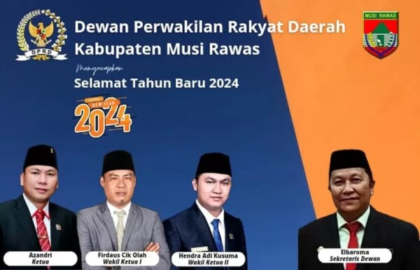 DPRD Musi Rawas turut mengucapkan Selamat Tahun Baru 2024 kepada seluruh masyarakat.