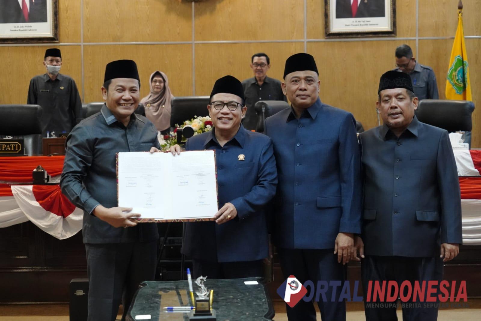 Penandatanganan dan Sambutan Plt. Bupati Usai mendapatkan persetujuan dari seluruh fraksi, dilaksanakan penandatanganan berita acara persetujuan bersama antara Pemerintah Daerah Sidoarjo yang diwakili oleh Plt. Bupati Sidoarjo, H. Subandi, SH., M.Kn., dan Ketua DPRD Sidoarjo, H. Usman, M.Kes.