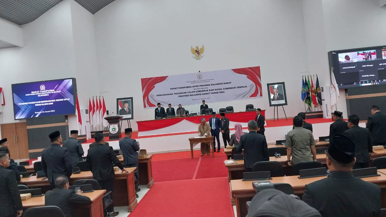 MAMUJU – Dewan Perwakilan Rakyat Daerah (DPRD) Sulawesi Barat (Sulbar) menggelar Rapat Paripurna untuk mengumumkan pasangan calon (Paslon) Gubernur dan Wakil Gubernur Sulbar terpilih periode 2025–2030.
