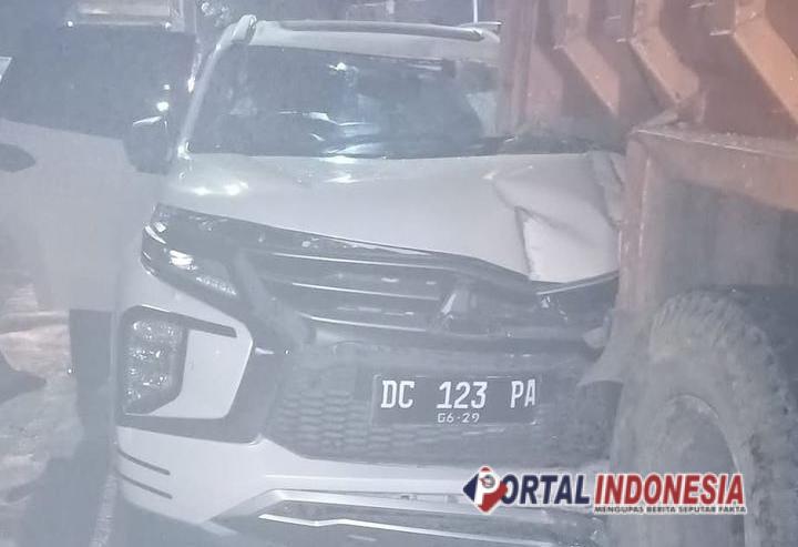 Mobil Mitsubishi Pajero putih dengan nomor polisi DC 123 PA yang mereka tumpangi dilaporkan menabrak truk yang sedang parkir di bahu jalan.