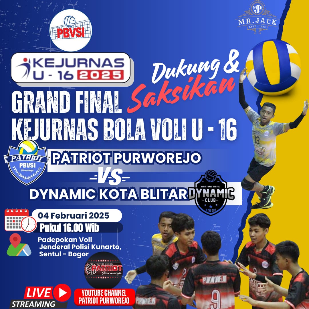 Dukung dan Saksikan Final Kejurnas Voli U-16 Patriot Purworejo vs Dynamic Kota Blitar